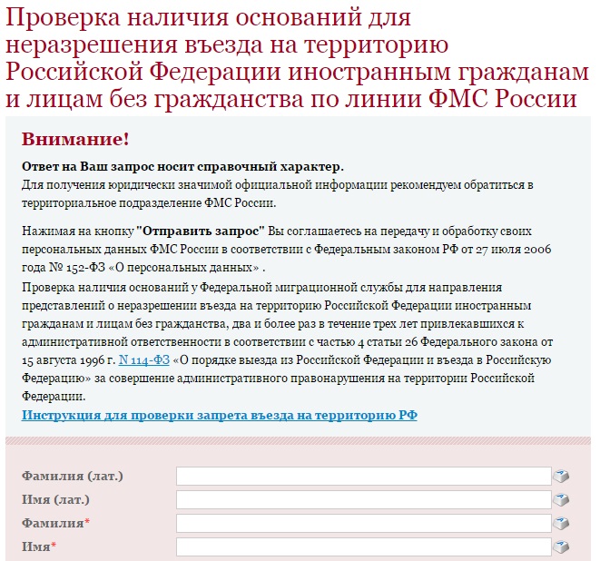 ГДЕ МАГУ ПИСАТЬ МАИ ДАНИЕ ЧТОБИ ПРАВЕРИТ НА МЕНИА ЕСТЬ ЗАПРЕТ В РАССИЮ ИЛИ НЕТ