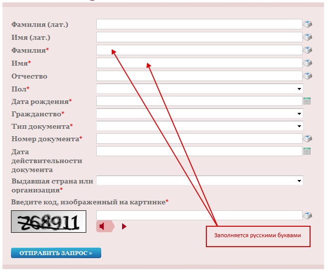 После указания всех данных, нужно ввести код из цифр, который вы увидите внизу формы на картинке. Далее отправить запрос, нажав на соответствующую иконку.