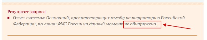 Если относительно вашей персоны нет запрет на въезд в РФ, то система после обработки запроса выдаст вас уведомление об этом.