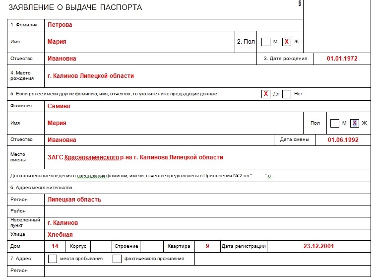 • В пункте 6 следует написать адрес прописки и число, с которого вы зарегистрированы по такому адресу.